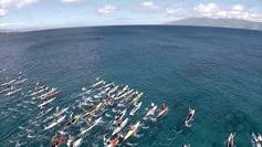 プラニング中 7月は毎週末のようにダウンウインドレースが開催されています。本場のダウンウインドを楽しみたい方、レースに挑戦したい方(PADDLE IMUA, MAUI2 MOLOKAIなど)旅の準備や現地での動きのセットアップをお手伝いします。