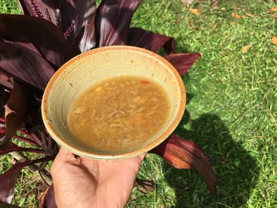 熱を冷ましてからジューサーに中身を移し、5秒ブレンド。少し細かい塊があるくらいの状態で止めて出来上がり。